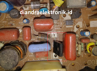 Kuukur tegangan B+ tv ini ternyata normal 125V begitu juga dengan tegangan 12V nya, Kuukur transistor Q755 & Q1000 komponen yang sering rusak pada model chasis ini ternyata normal, kecurigaan awal ic vertikal IC501 yang rusak dengan no LA78040 karena salah satu proteksi tv ini disampling dari Ic vertikal dan setelah penggantian ic vertikal saatnya uji coba craaakk.... terdengar suara semburan flyback kemudian ada suara derik dan standby hhmmmm... kucari sumber derik tersebut ternyata berasal dari flyback BSC25-0232K sepertinya ada komponen yang short diarea secunder trafo flyback, kembali kulakukan pengukuran diarea sekunder flyback ketika pertama flyback nyembur, teg video terukur 56V nah... sepertinya ini sumber masalahnya, kucek dioda D606 ternyata normal cek elco C604 dengan smart testerku ternyata normal juga hmmm... kembali kulanjutkan pencarian komponen yang short pada tv ini cek dioda D611 terukur normal, cek dioda D610 terukur setengah short nah... sepertinya ini biangnya dioda dibodinya tertulis RH4F yang merupakan dioda dumper horizontalnya terukur setengah short, ck....ck....ck....ck...